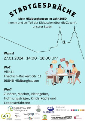 Unter dem Motto "Mein Hildburghausen im Jahr 2050" laden der Permakultur Birkenfeld e.V. und Partner wie der Kulturrat Thüringen e.V. und Zukunftsfähiges Thüringen e.V. ein zur Diskussion über die Zukunft der Stadt Hildburghausen.