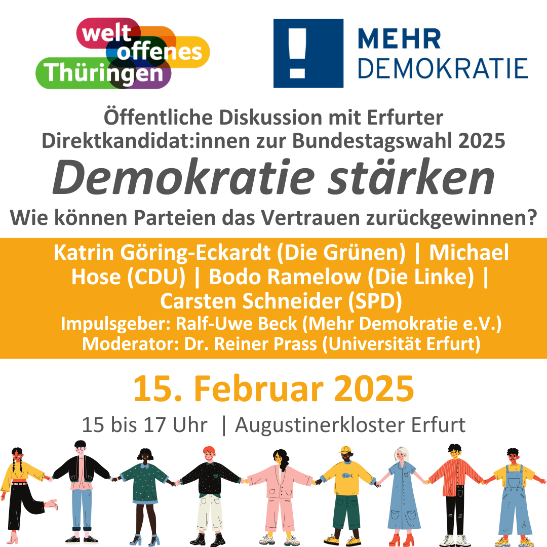 Austausch mit Erfurter Direktkandidat:innen für die Bundestagswahl 2025 zum Thema »Demokratie stärken: Wie können Parteien das Vertrauen zurückgewinnen?«