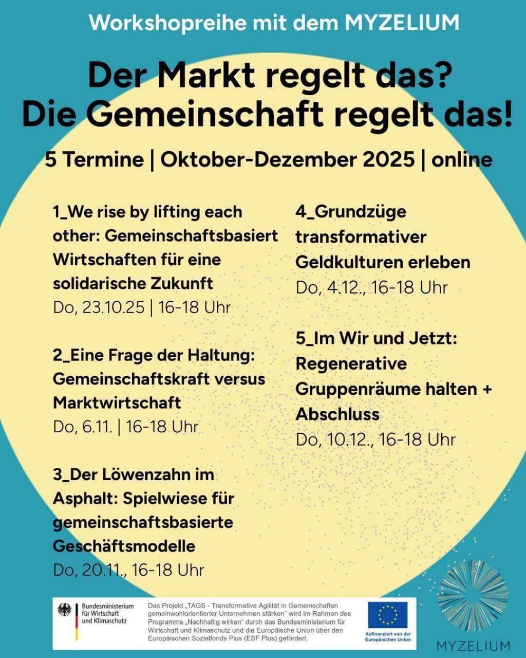 "Der Markt regelt das? Die Gemeinschaft regelt das! Einführung in das gemeinschaftsbasierte Wirtschaften": Workshopreihe mit 5 Terminen; bitte anmelden
