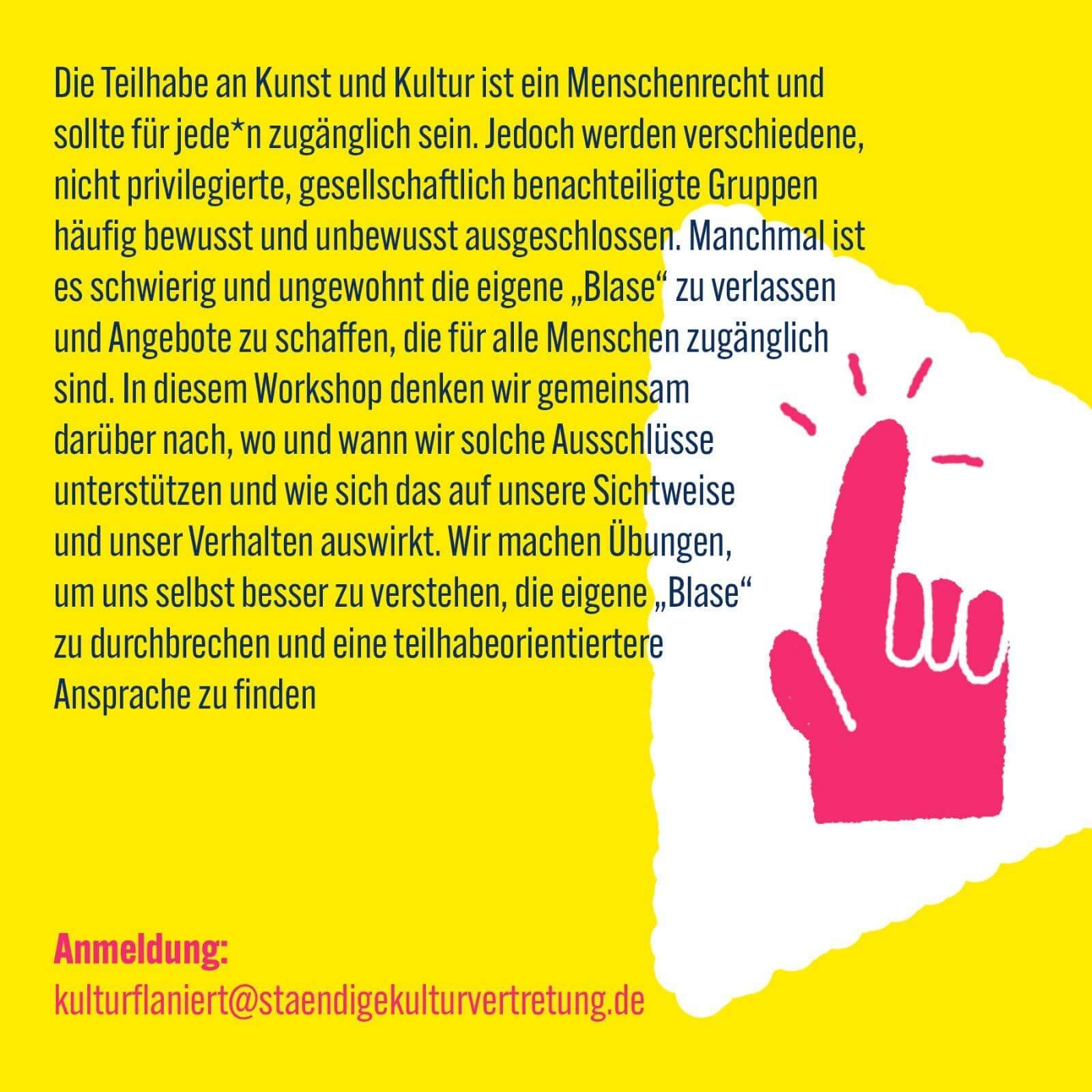 Workshop mit Maria Gehre und Julia Lange über kulturelle Teilhabe, bitte anmelden