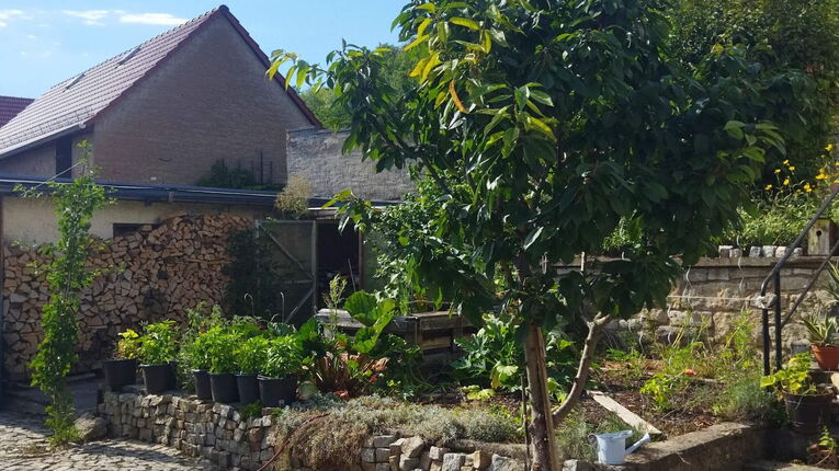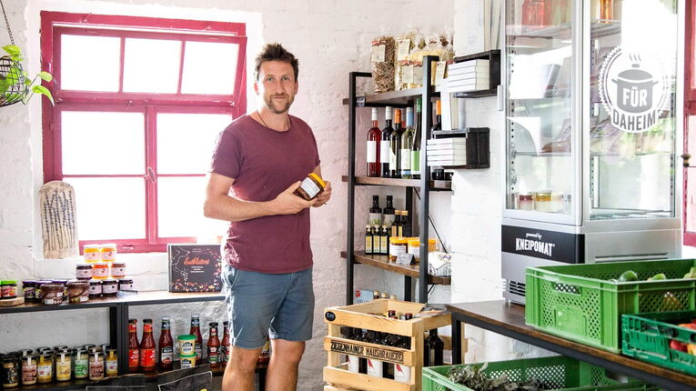Die Geschichte des Ladens beginnt bereits vor 8 Jahren, als Tim, der Inhaber, die Immobilie beim Gassigehen entdeckt. Zu diesem Zeitpunkt wohnt er in Jena und sieht in dem damals grauen, tristen Gebäude viel Potenzial. Steht man heute im Innenhof, kann man sich kaum vorstellen, dass dieser einmal einen leblosen Eindruck vermittelt hat. Tomaten, Zucchini, Kürbisse und viele Kräuterbeete machen ihn zu einer Wohlfühloase. Doch wie kam Tim auf die Idee, in einem so kleinen Ort einen Laden zu eröffnen?