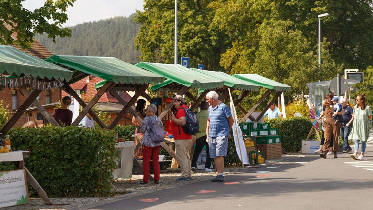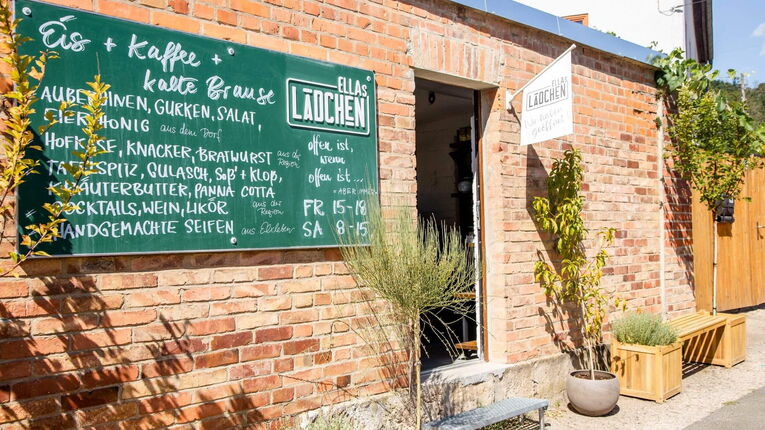 Durch viele kleine Dörfer und verschlungene Waldstraßen führt der Weg nach Neuengönna, einem kleinen Ort in der Nähe von Jena. Verträumte, charmante Fachwerkhäuser und Seitenhöfe prägen das Dorfbild. Ein Seitenhof fällt besonders auf. Sitzgelegenheiten am Fußweg laden zum Verweilen an Ellas Lädchen ein. Tims Dorfladen „Ellas Lädchen“ bietet seit April 2022 den Ortsansässigen aber auch Urlaubsgästen die Möglichkeit, regionale Lebensmittel direkt vor Ort zu kaufen.