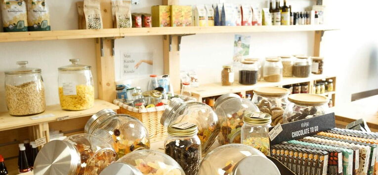 Zudem versucht sie, die Hemmschwelle für die Kundschaft niedrig zu halten, beispielsweise indem Gläser zum Abfüllen der Waren kostenlos zur Verfügung gestellt werden. Das Einkaufen bei ihr ist ein bewussteres, gezielteres Einkaufen als im Discounter. Dadurch, dass Kaufinteressierte selbst entscheiden können, wie viel sie von einem Produkt benötigen, kaufen sie auch nur so viel, wie sie brauchen. Und das wirkt der Lebensmittelverschwendung entgegen. Zudem findet man durch das regelmäßig optimierte Sortiment Inspirationen und kann Produkte kennenlernen, die man in konventionellen Geschäften nicht findet. Außerdem sieht man im Laden viele Flyer, Ausleger und Informationen von regionalen Partnern, Initiativen, Organisationen u.Ä., die Sandra gerne unterstützt. Ihre Kriterien dafür sind unter anderem die 17 Nachhaltigkeitsziele der UN-Mitgliedsstaaten die sie als Orientierung dafür nutzt, wofür sie wirbt und was sie auslegt.