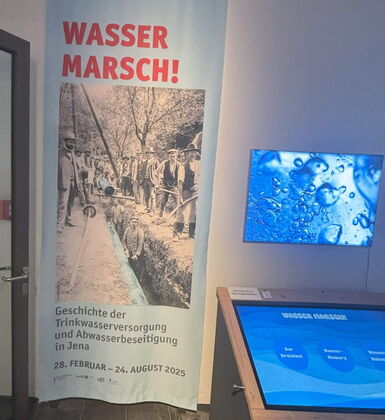 Im Anschluss an das Forum rundete der Besuch der Ausstellung „Wasser Marsch!“ im Stadtmuseum Jena die Veranstaltung ab. Die Ausstellung handelt von der Geschichte der Jenaer Wasserversorgung und stellt gleichzeitig ein gutes Beispiel dar, wie das Bewusstsein für den Wert des Wassers bei den Besucher*innen gestärkt werden kann.