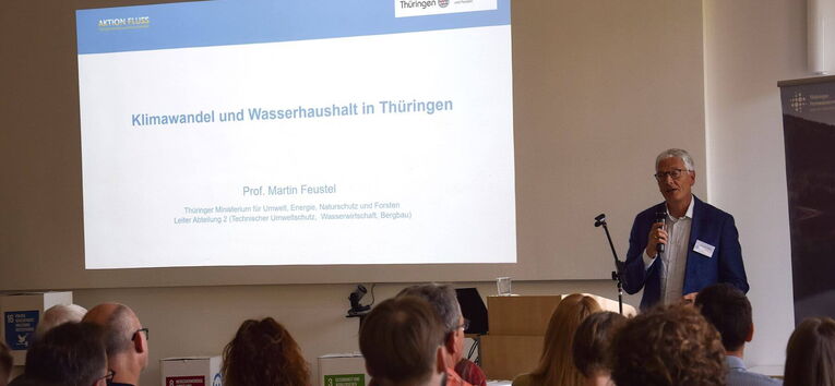 In ihrem Grußwort betonte Kathleen Lützkendorf, Dezernentin für Soziales, Gesundheit, Zuwanderung und Klima, die Bedeutung von Wasser für die Stadt Jena. Demnach ginge die Stadt Jena mit einem Klimaanpassungskonzept voran, installiere vermehrt Trinkbrunnen, reduziere die Hitzebelastung in städtischen Kindertagesstätten und nutzte klimaangepasstes Stadtgrün, um die Lebensqualität zu erhöhen.