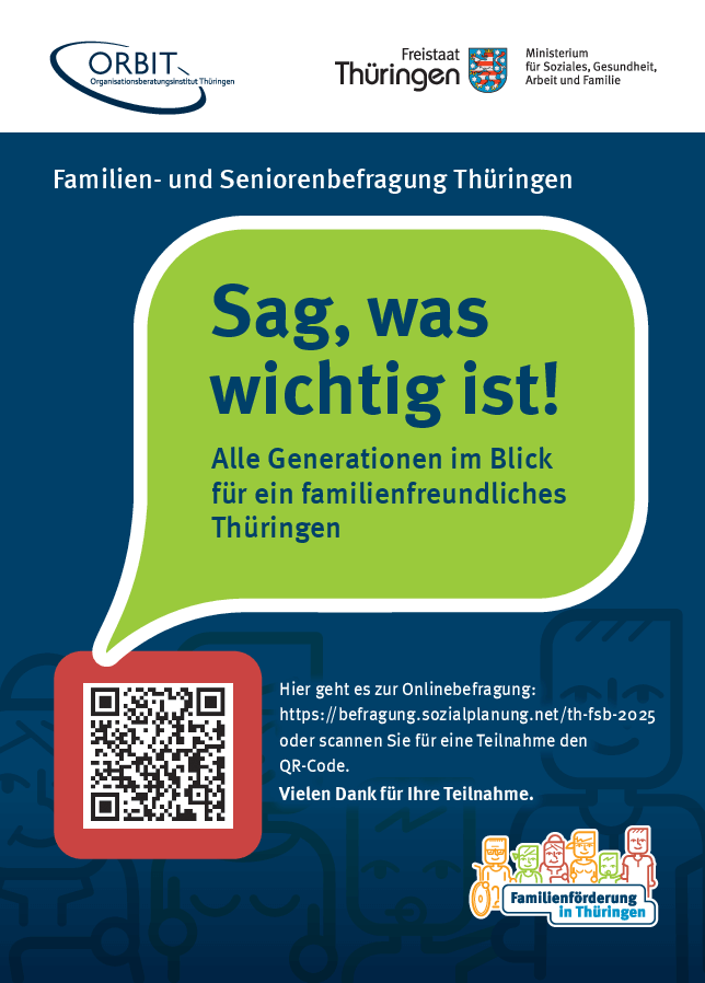 Die Befragung hat zum Ziel, die vielfältigen Lebenssituationen, Bedürfnisse und Herausforderungen von Familien, Seniorinnen und Senioren im Freistaat aufzunehmen und damit eine wichtige Grundlage für zukünftige Entscheidungen und Angebote zur Förderung von Einrichtungen und Projekten zu schaffen.