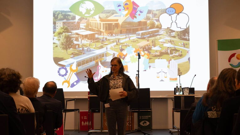 Was sind denn Kulturen der Nachhaltigkeit und wie fassen wir Kultur auf? Beate Seidel vom DNT Weimar & Sprecherin des Thüringer Nachhaltigkeitsbeirates richtete den Fokus auf Werterhaltung: "Dass wir das, was wir als wertvoll erachten und als erhaltenswert, auf eine sinnvolle Art und Weise bewahren für das, was vor uns liegt." Es braucht gemeinschaftliches Leben, dafür wiederum braucht es Vereine und Initiativen vor allem in ländlichen Räumen.
