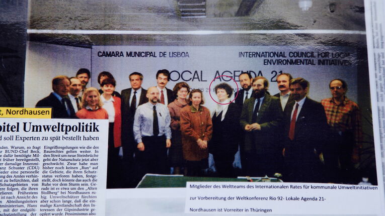 Mit dem Fall der Mauer 1990 knüpfte Gisela Hartmann die Aktivitäten in Nordhausen in die weltweite Nachhaltigkeitsbewegung ein. Sie verband das Lokale direkt mit dem Globalen. Als Vertreterin der Stadt (vorher zwischen allen Stühlen und beschattet von der Stasi aber beschützt von der Kirche, war sie inzwischen zur Leiterin des Umweltamtes geworden) traf sie mit anderen kommunalen Umweltaktivist*innen zusammen. Auf ihrer erster Weltkonferenz 1990 in New York gründeten sie den ICLEI – International Council for Local Environmental Initiatives (heute: Local Governments for Sustainability). Und sie legten den Grundstein für die UN-Konferenz für Umwelt und Entwicklung in Rio 1992. Soviel zu dem Gerücht, Gisela Hartmann sein Rio gewesen. Das war sie nicht, aber sie hatte Anteil daran, dass Rio überhaupt stattfand. Übrigens: in Ostdeutschland gibt es nur 3 Mitglieder im ICLEI - Dresden, Berlin und der LK Nordhausen. Nordhausen war – dank Gisale Hartmann und ihrer Mitstreiter*innen - Vorreiter in Sachen nachhaltiger Entwicklung in Thüringen.
